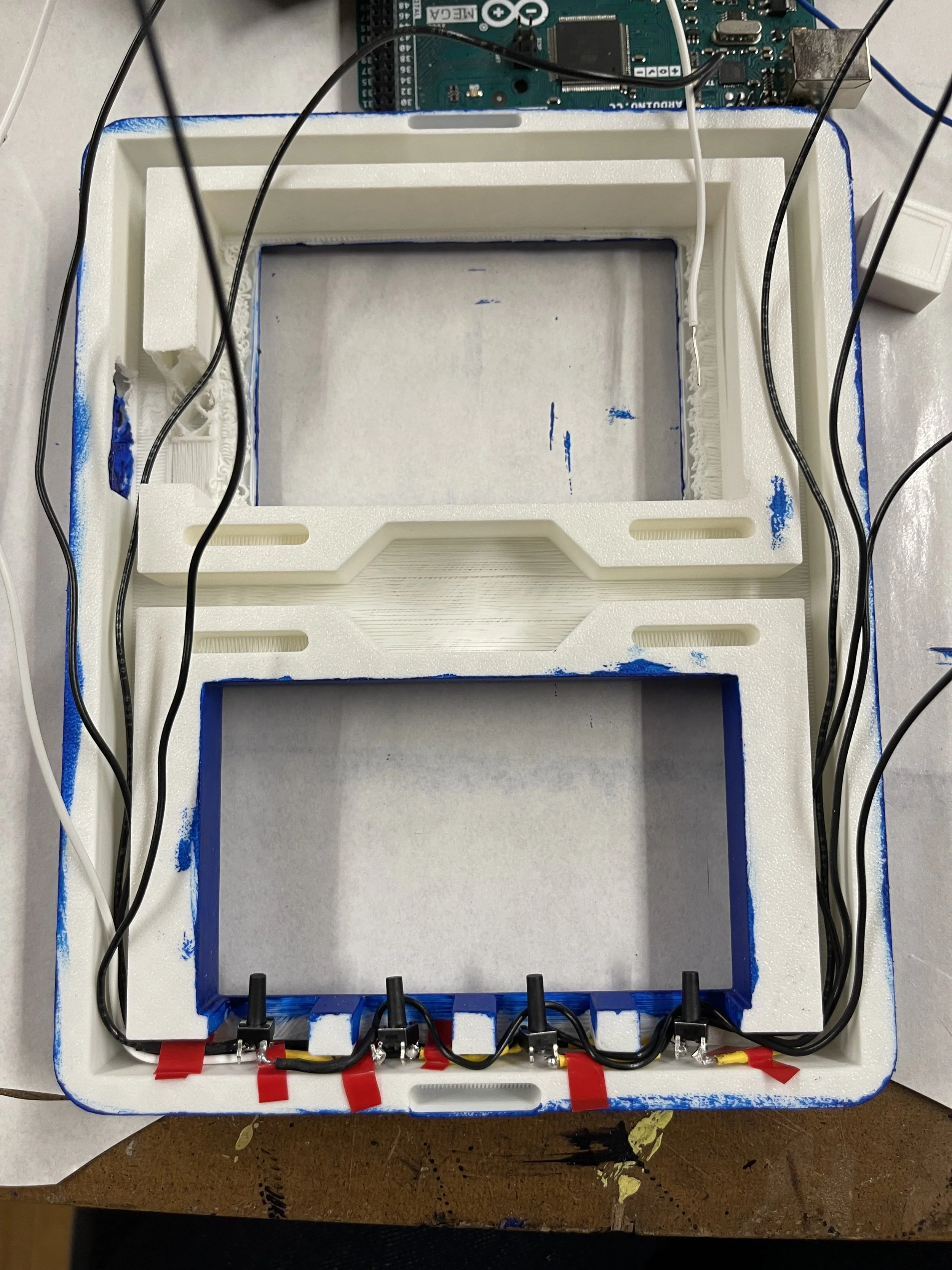 3D printed housing for free floating tactile buttons, Arduino board, and LCD screen